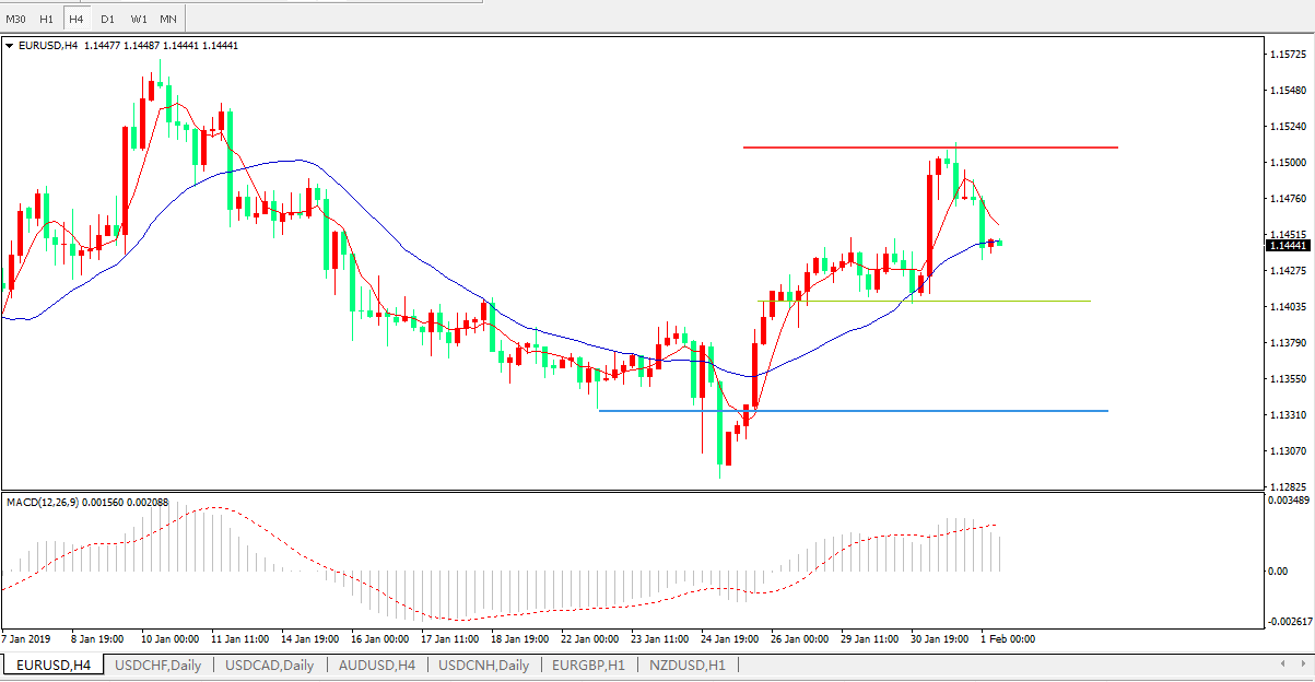 欧元兑美元EURUSD  4小时图: