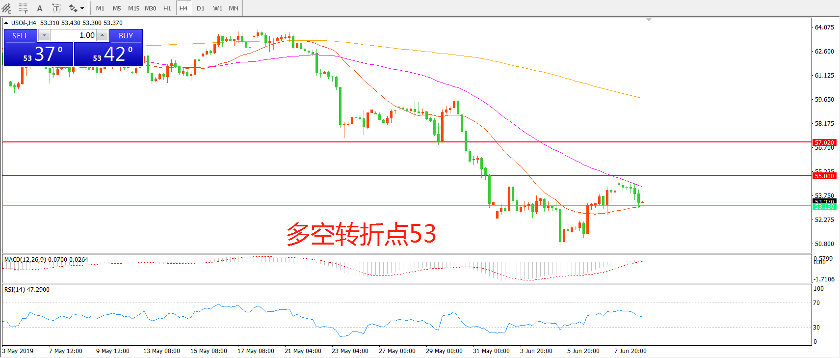 多空转折点:53.00