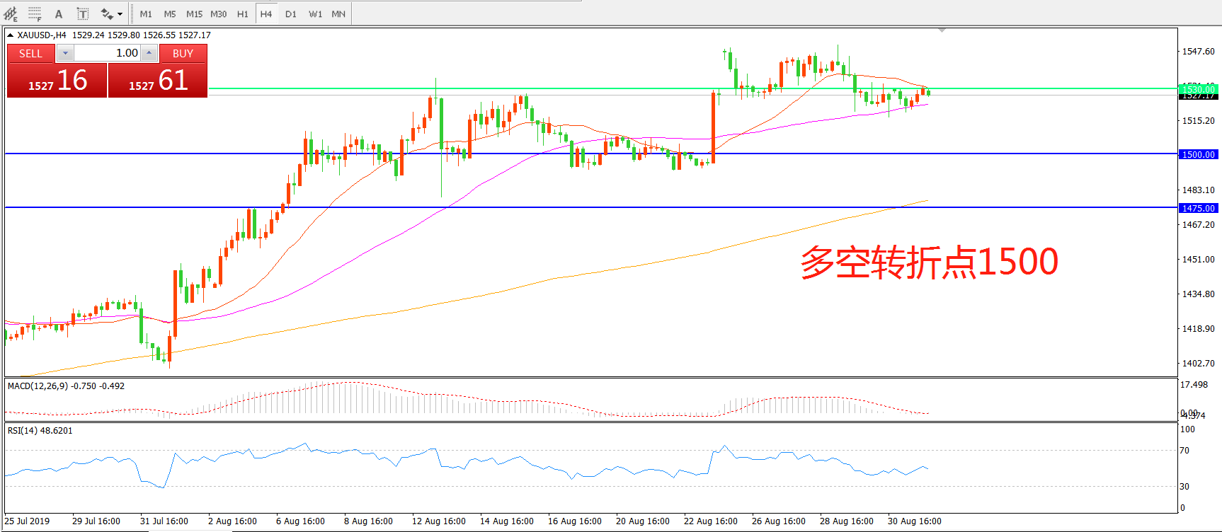 多空转折点:1530.00