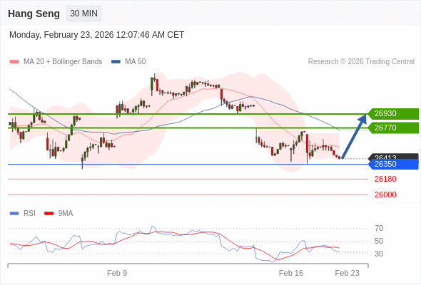 在 26350 之上,看涨,目标价位为 26770 ,然后为 26930 。