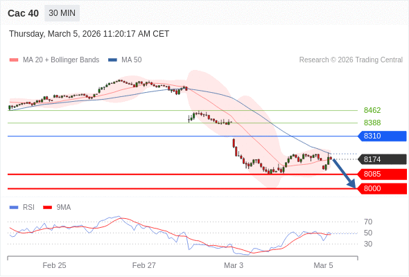 Cac 40 当日内: 没有明显变化趋势。