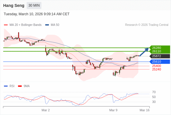 恒生指数 当日内: 期待26280。