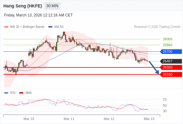 香港恒生指数期货 当日内: 短期关键阻力位在25700。
