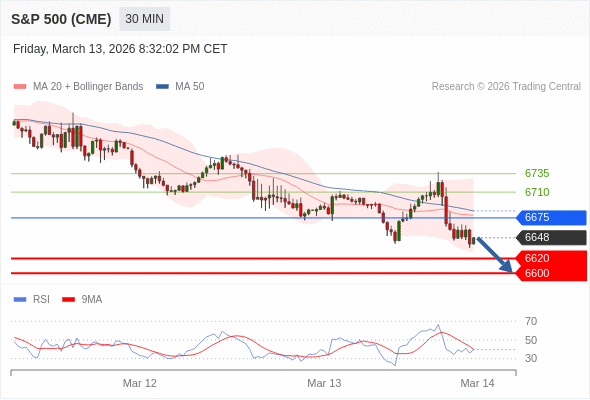 在 6675 之下,看跌,目标价位为 6620 ,然后为 6600 。