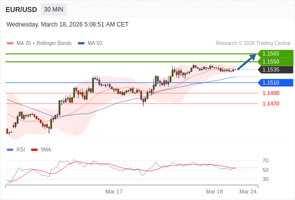 欧元/美元 当日内: 期待1.1550。