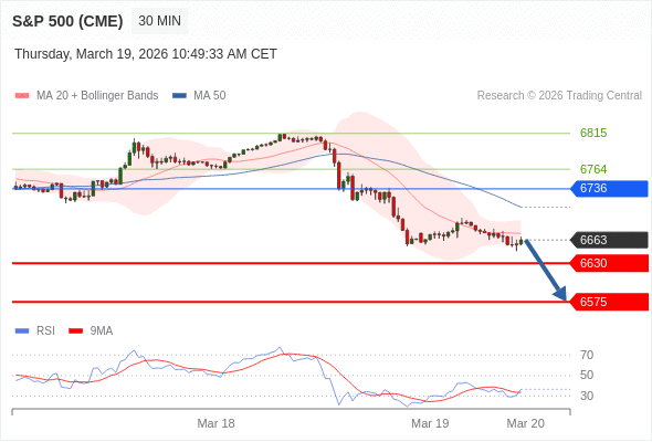 在 6736 之下,看跌,目标价位为 6630 ,然后为 6575 。