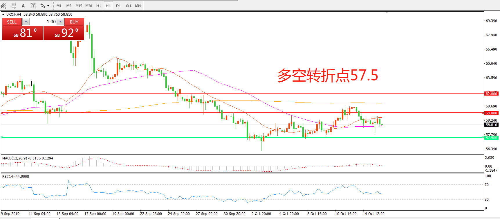 多空转折点:57.50