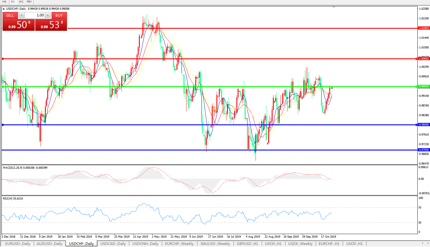 交易策略:0.9950上方看涨,目标1.0060、1.0180