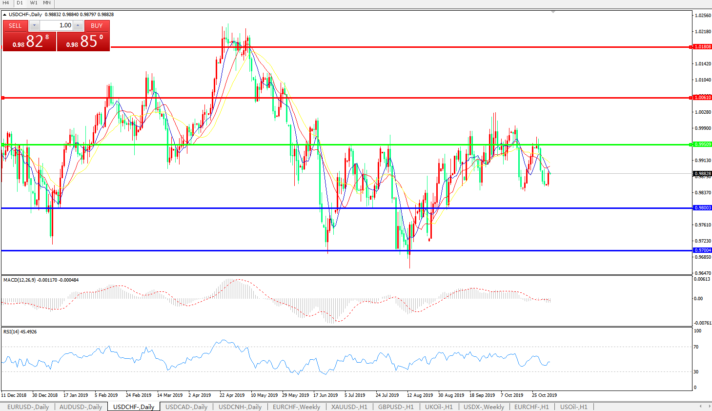 美元兑瑞郎USDCHF    日线
