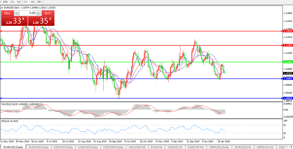 交易策略:1.1100下方看跌,目标1.1000、1.0880