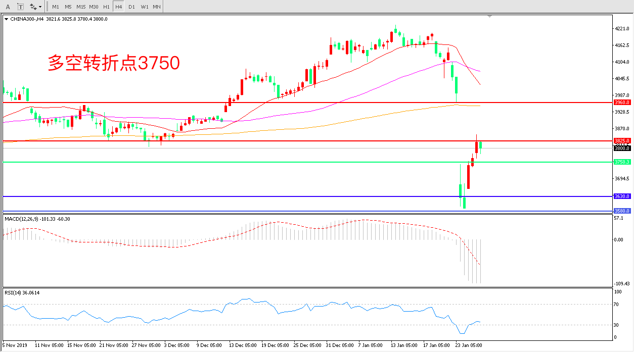 备选策略:在3750之下看跌,目标3630.00     3580.00