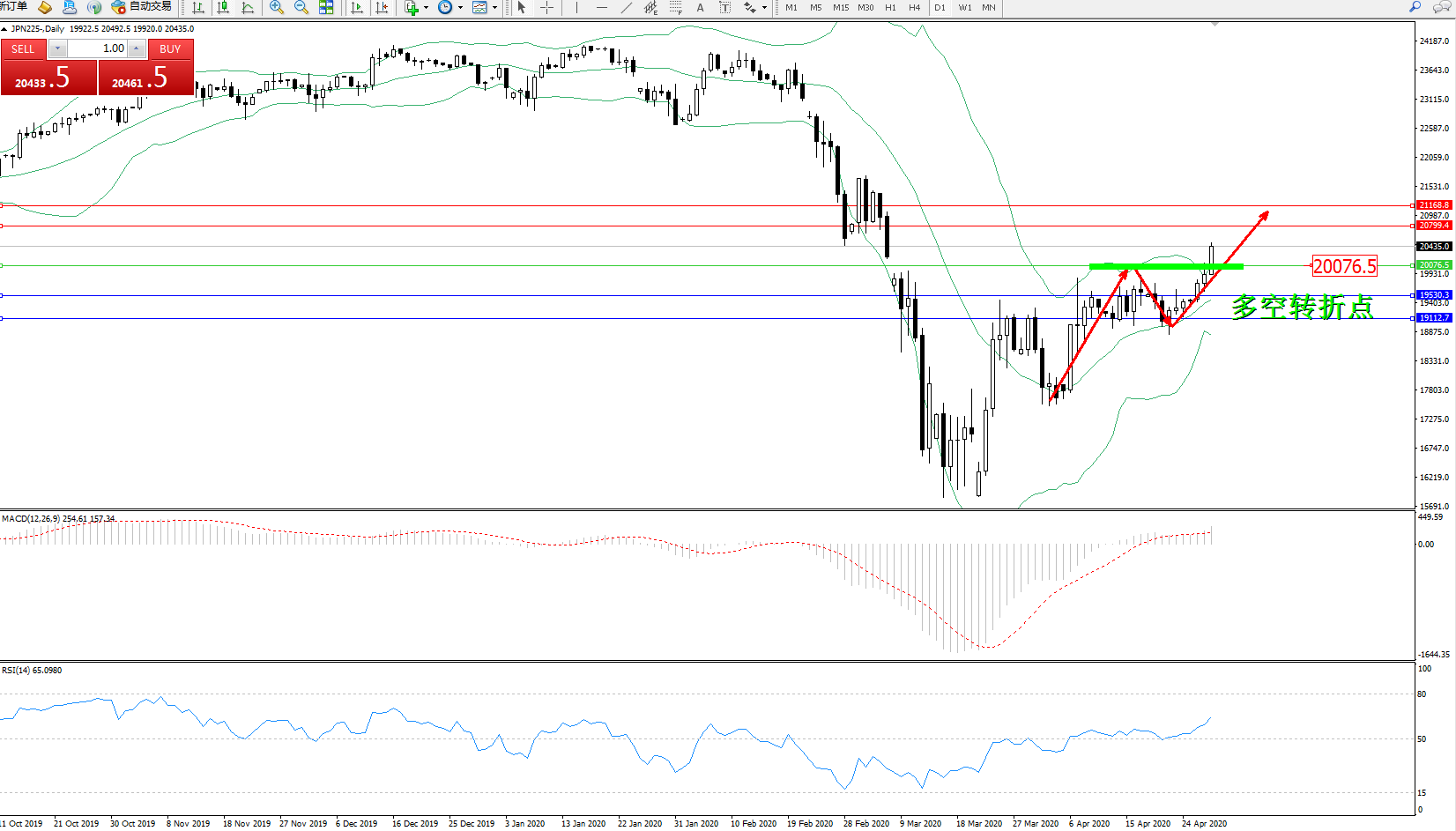 日经指数JPN225——日K线图显示: