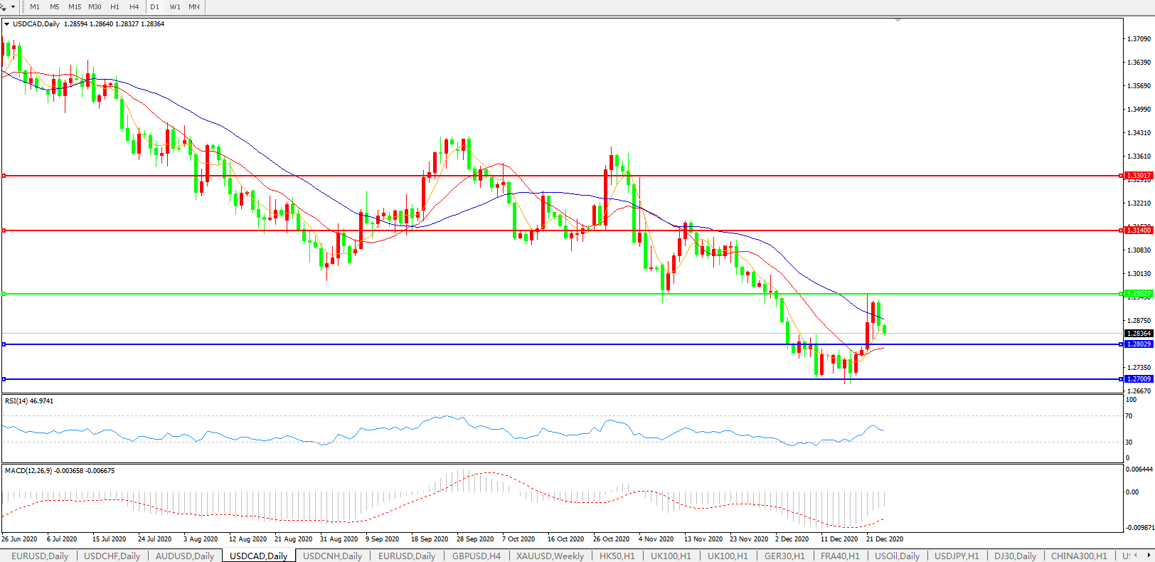 美元兑加元USDCAD    日线图: