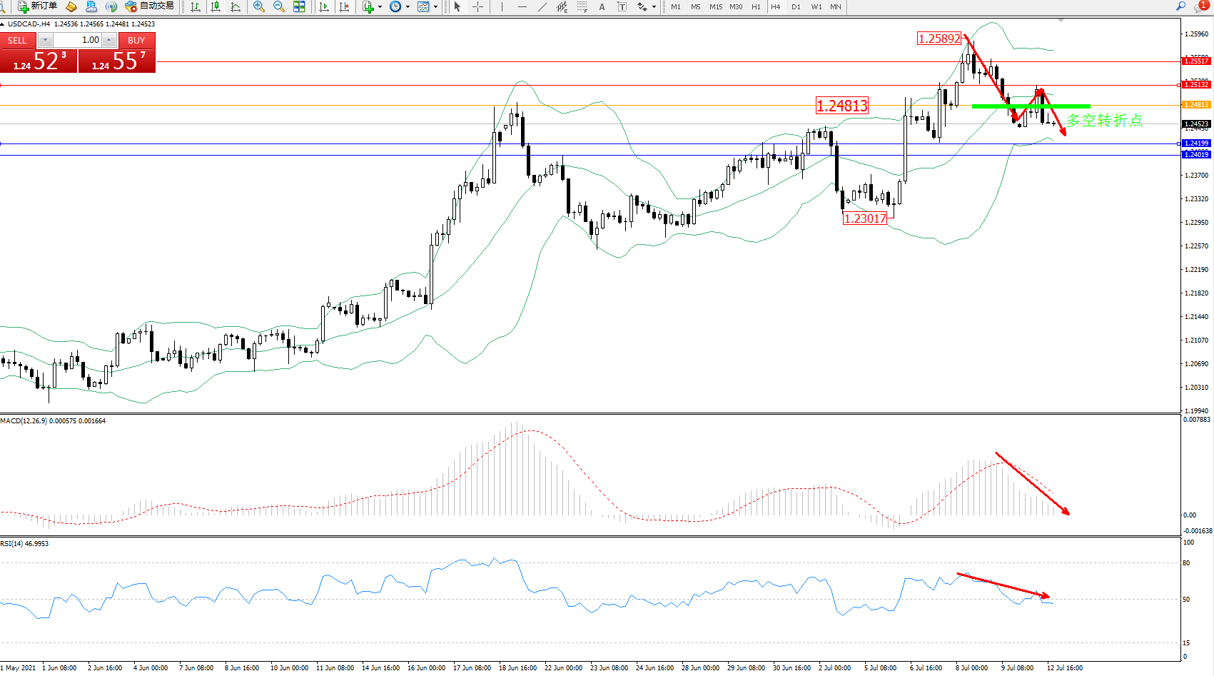 美元加元USDCAD——4小时K线图显示:
