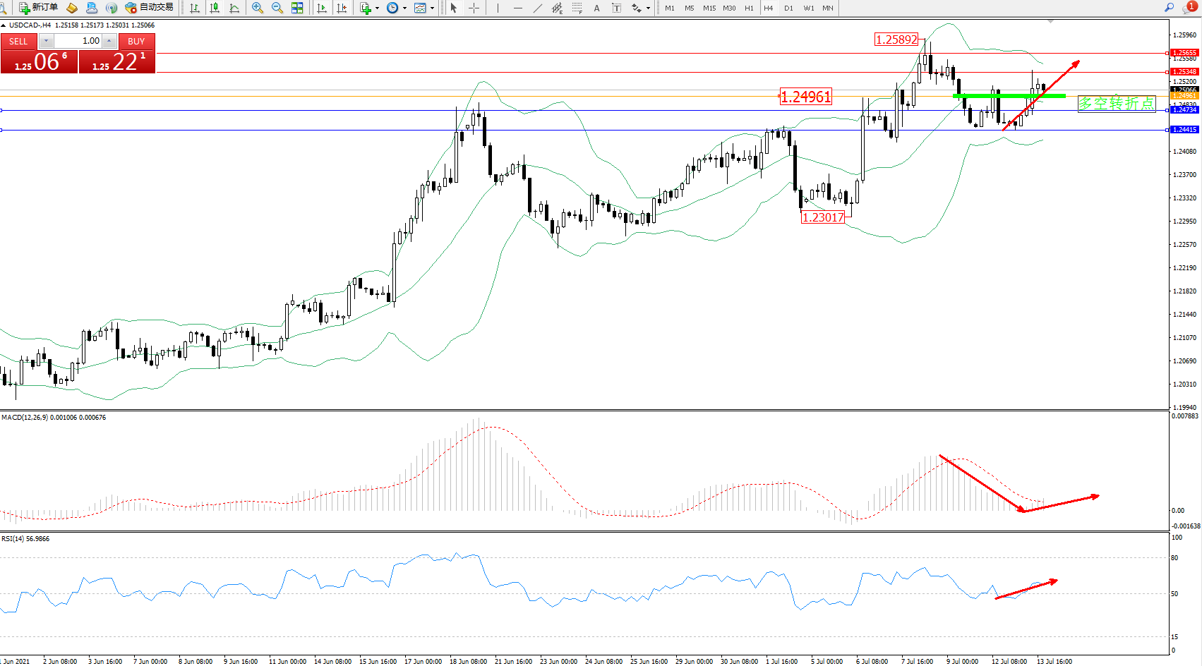 美元加元USDCAD——4小时K线图显示: