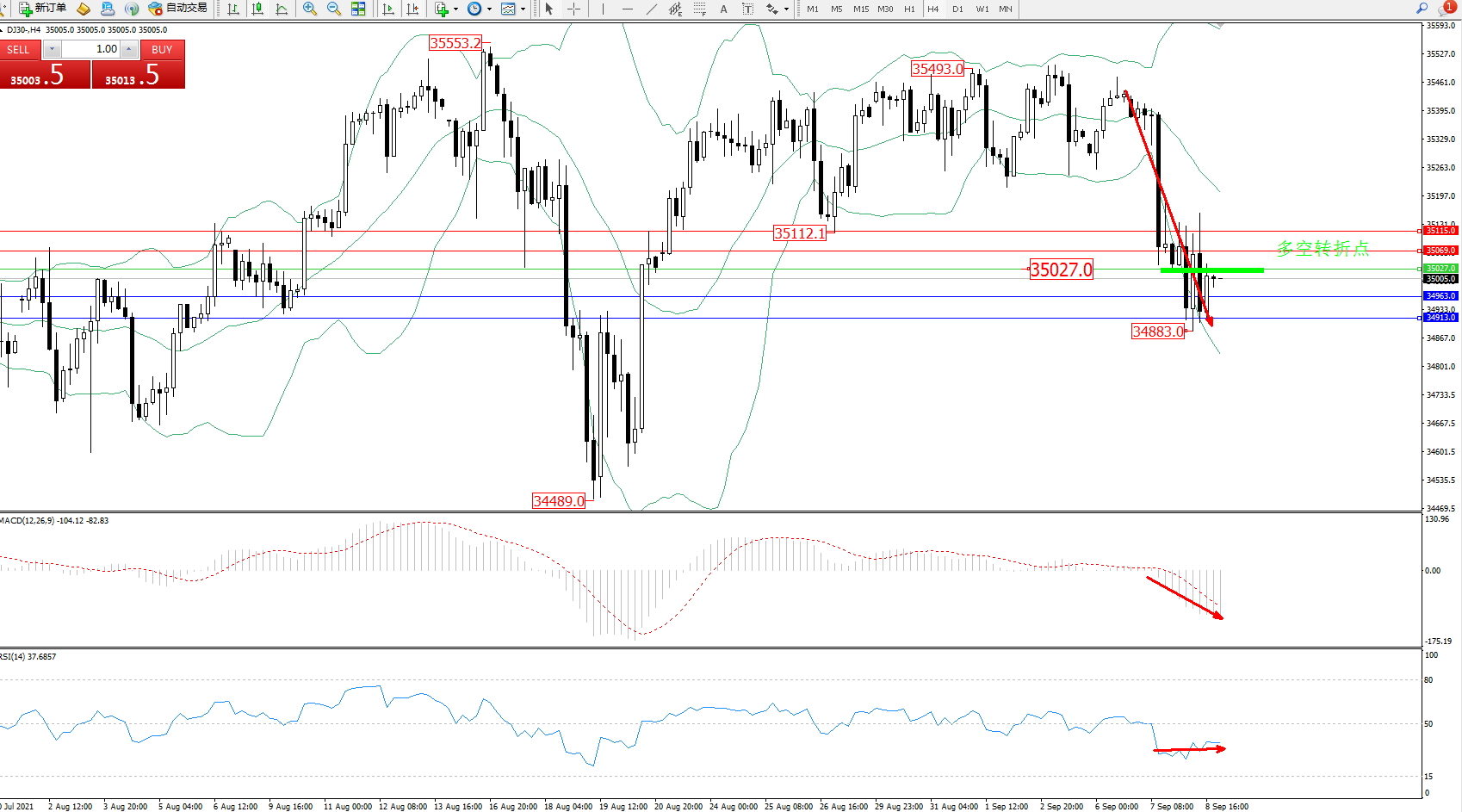 交易策略:35027下方看跌,目标34963、34913