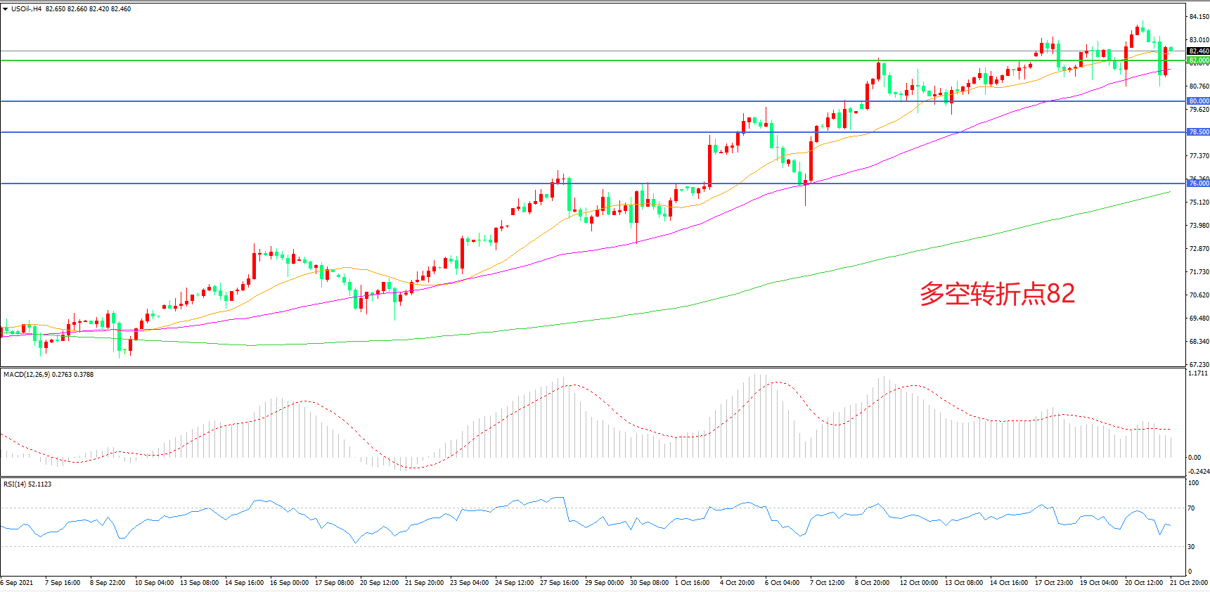 多空转折点:82.00