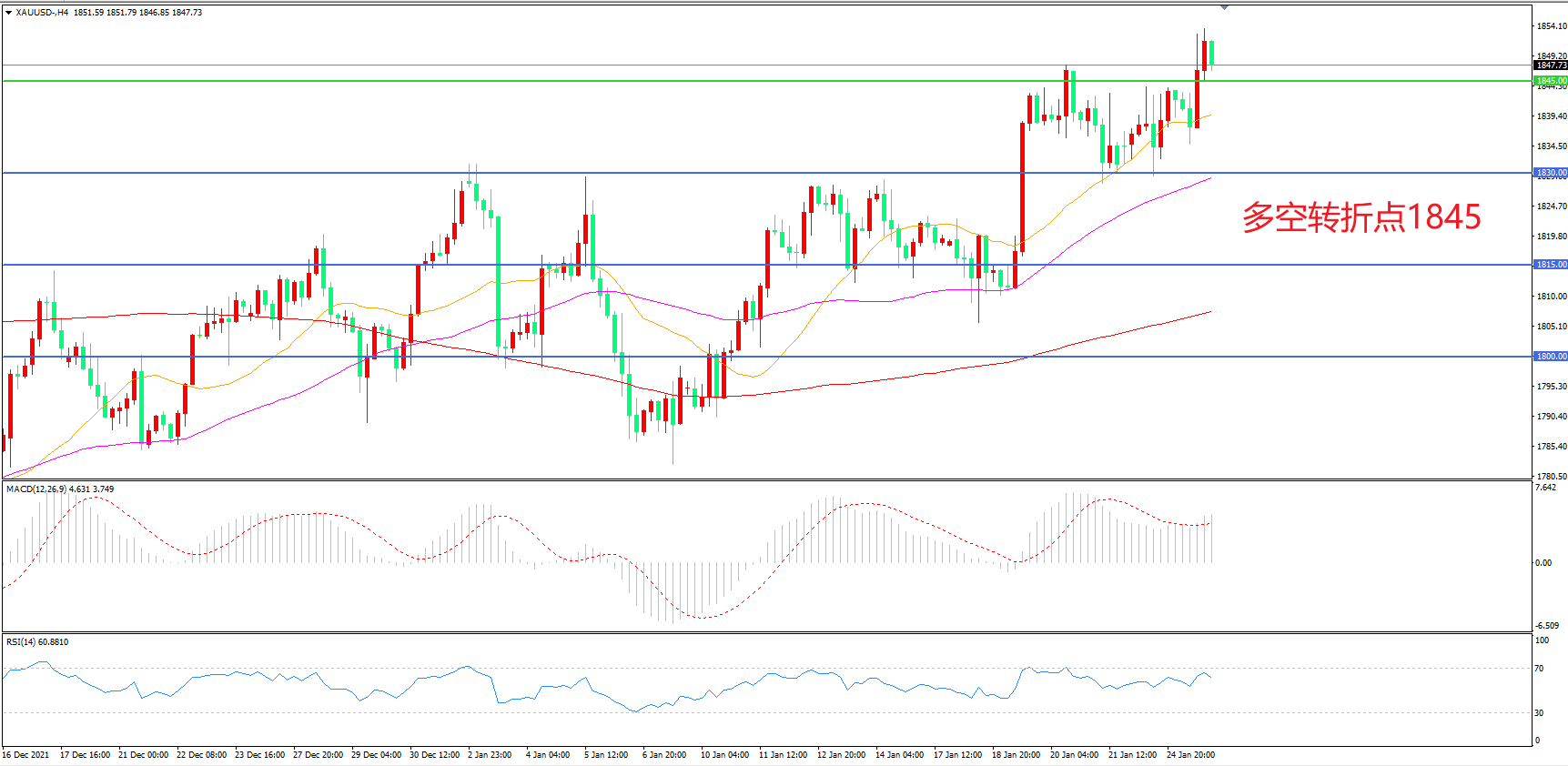 交易策略:在1845.00之上看涨,目标1860.00       1875.00