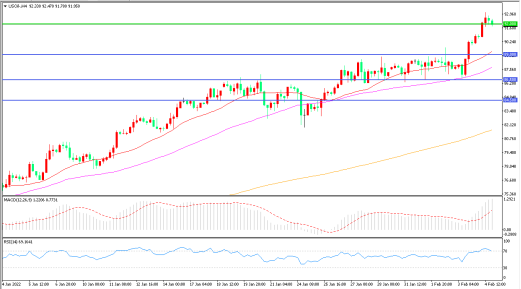 受美国寒冷天气和全球主要产油国持续的政治动荡导致供应中断影响,油价上周五创下七年新高,WTI原油大幅拉升后收报91.95美元/桶。