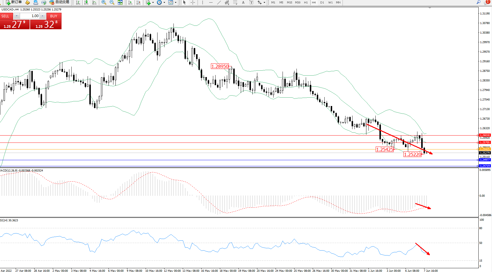 美元加元USDCAD——4小时K线图显示: