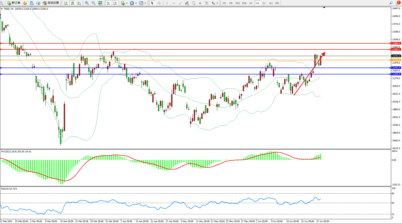 恒指HK50 4小时图