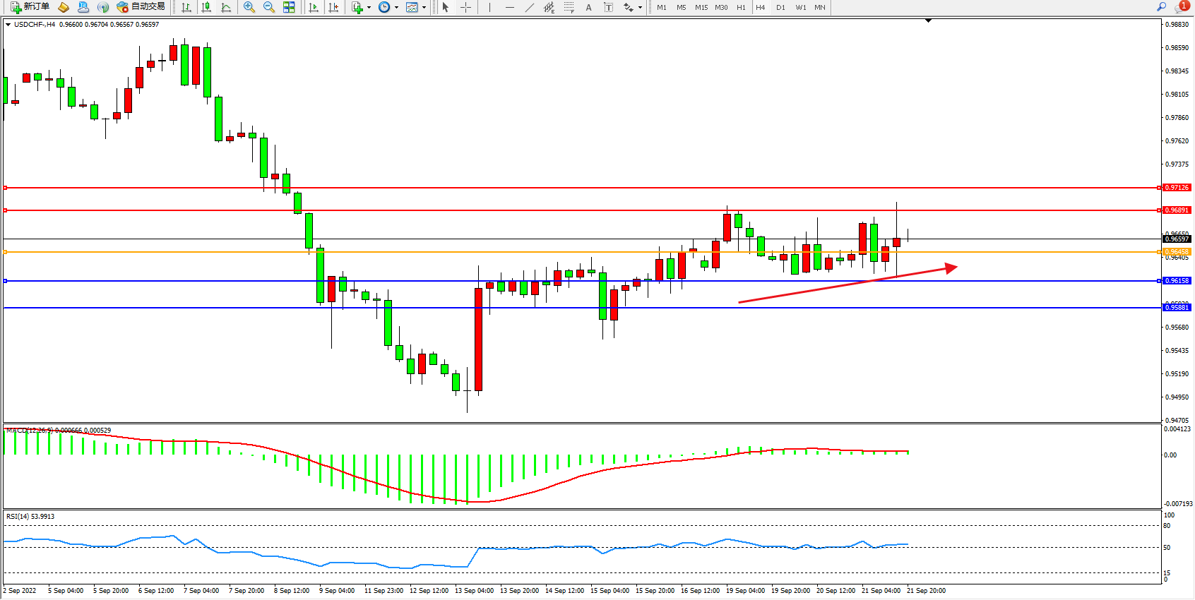 备选策略:0.96458下方看跌,目标0.96158、0.95881