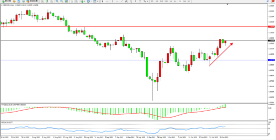 多头带来了维持窄幅震荡缓慢上扬,短期看涨情绪依旧,市场多头动力不断拉升,上方压制关注1.19054附近,低位支撑关注1.11943附近,MACD指标处于0轴线上侧整理上移,RSI指标处于50均衡线上侧徘徊,如图: