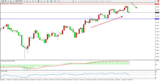 英镑兑美元上周震荡回落,英国央行放缓升息步伐施压英镑,市场预计英国央行可能会在2023年2月的下一次会议上将加息步伐放缓至25个基点,因为预计由于抵押贷款利率上升,英国消费者支出将下降。