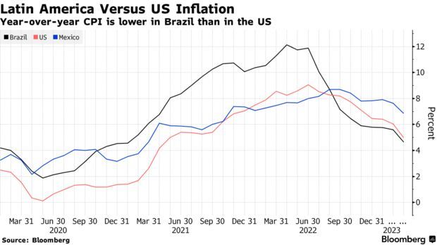 这一资产类别将受益于高于美国的基准利率、以及在某些情况下低于美国的通胀率。在拉丁美洲,当价格压力开始膨胀时,该地区各国央行的行动比美联储更快,最终采取了更多的紧缩措施。现在,由于美联储预计将很快停止加息并在今年晚些时候转向宽松,美元正在走弱,这为拉美地区的央行官员效仿美联储铺平了道路,并为持有该地区本币债券的投资者带来了一笔意外之财。