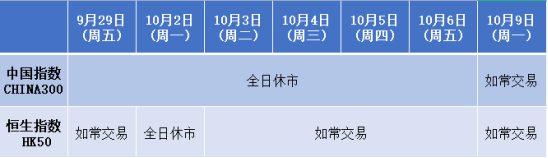 因应2023年9月29日至10月6日期间为中秋节及中国国庆节假期,本公司以下产品的交易时间将于假期期间作以下安排,敬请留意。