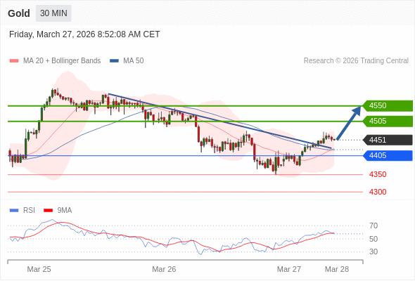 在 4405 之上,看涨,目标价位为 4505 ,然后为 4550 。